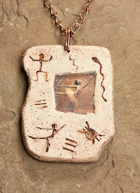 An image for a pendant popped into my head one day and I managed to create it in clay. Now I can't decide if I like it. It is an image transfer on an inner layer covered by faux sandstone. The window is supposed to look like it was chiseled out of the stone. Please tell me what you think.